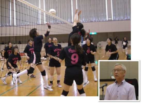 第1回議長杯ママさんバレーボール大会が盛大に開催され、伊藤議長が「相互に親睦の輪を広げ、ご自身の健康はもとより、明るい健全な家庭や、地域社会を築いていただきたい」と挨拶しました。