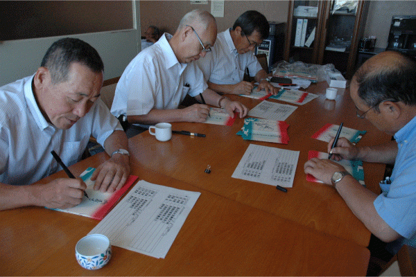 8月26日(日)に開催される永平寺大燈籠ながしのボランティア活動として、昨年に引き続き燈籠の帆書きのお手伝いをさせていただきました。